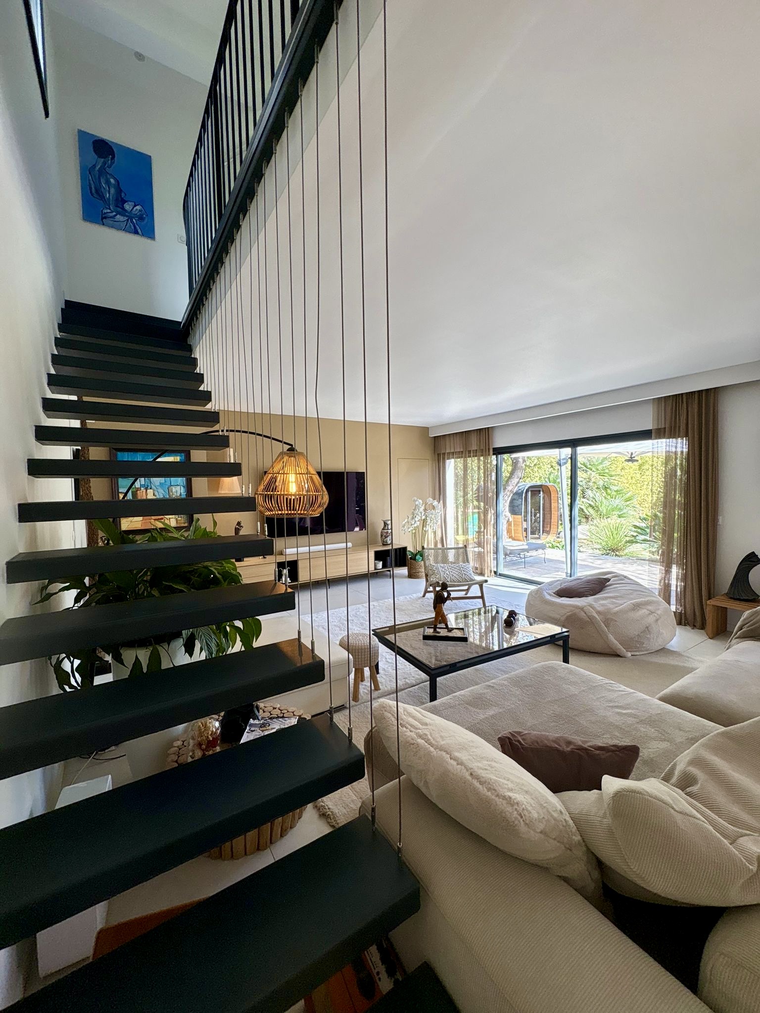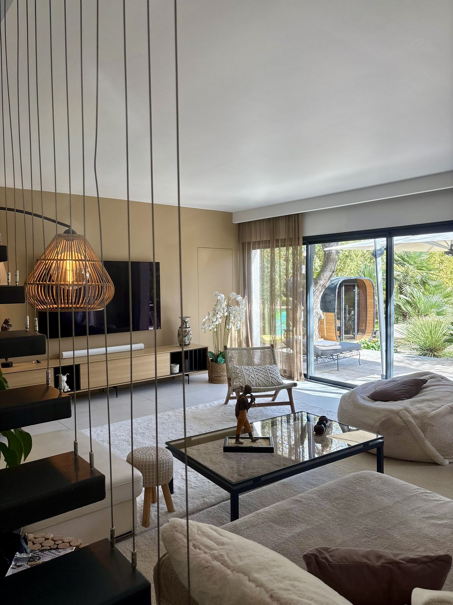 À l’extérieur, la propriété dévoile un vaste jardin paysager conçu pour le bien-être et les instants inoubliables. Vous y trouverez une magnifique piscine lagon entourée de terrasses ensoleillées, un sauna privé pour une parenthèse détente, ainsi que plusieurs espaces de réception. Trois barbecues, dont un brasero, et du mobilier extérieur de qualité invitent à prolonger les soirées sous les étoiles dans une atmosphère chic et décontractée.