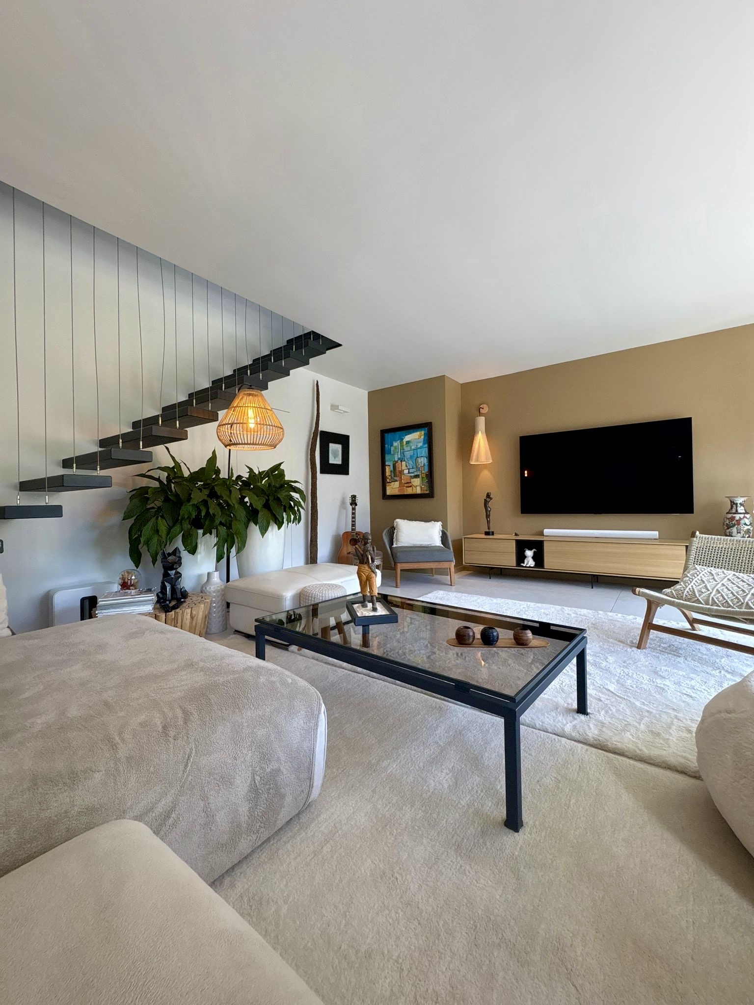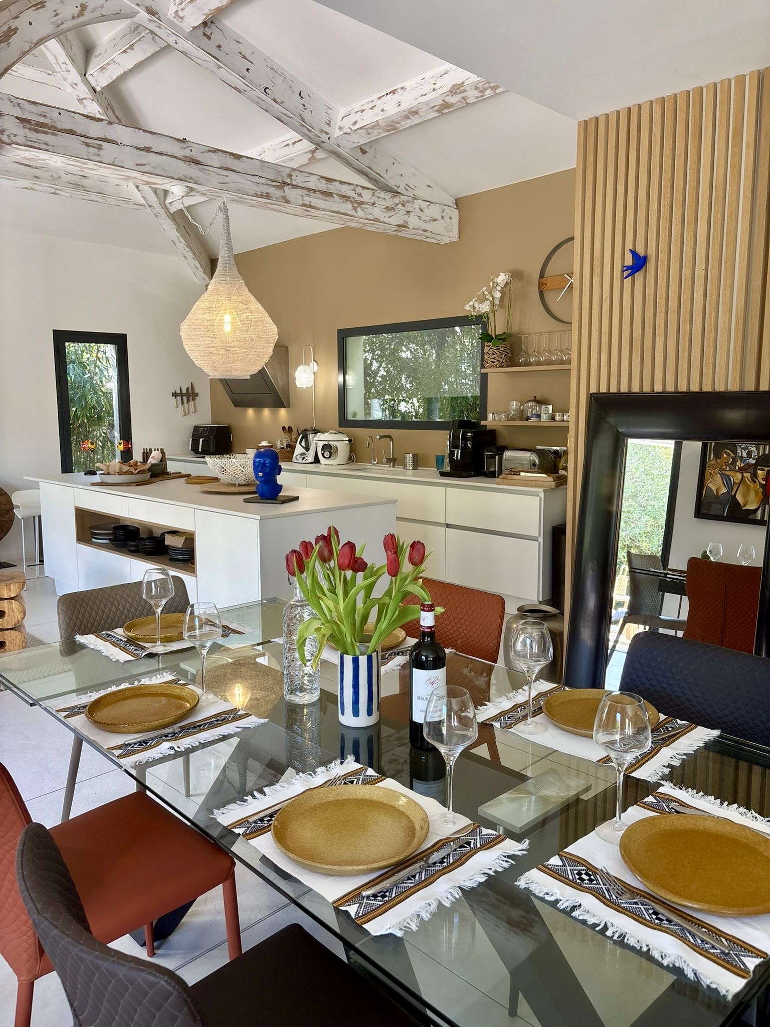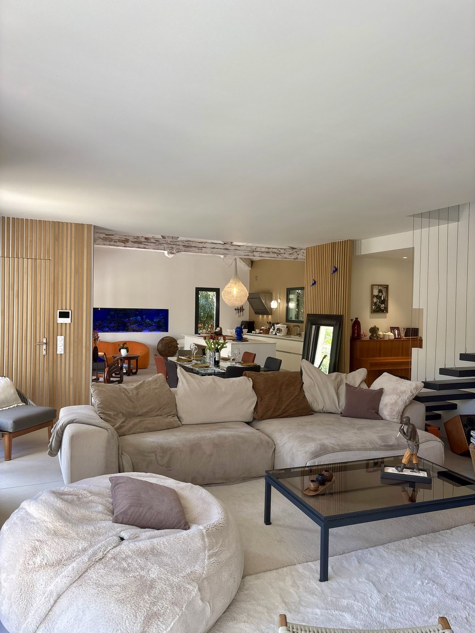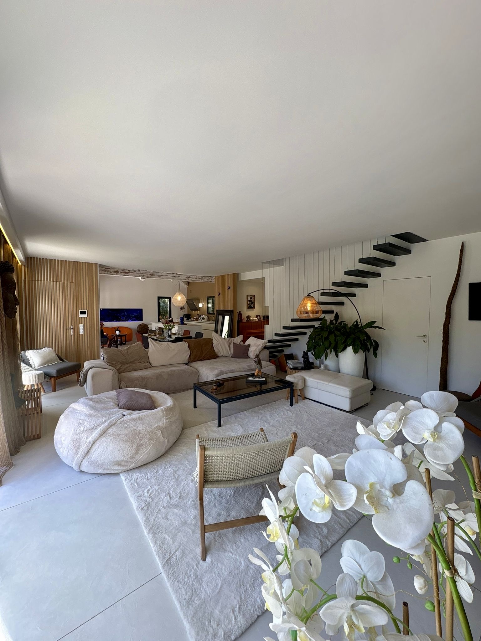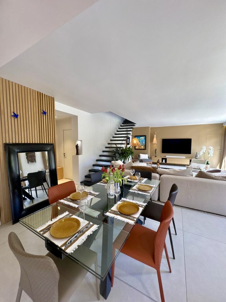 L’espace de vie s’organise autour d’une grande cuisine ouverte sur un séjour ultra lumineux, idéal pour partager des moments conviviaux dans une ambiance moderne et élégante.