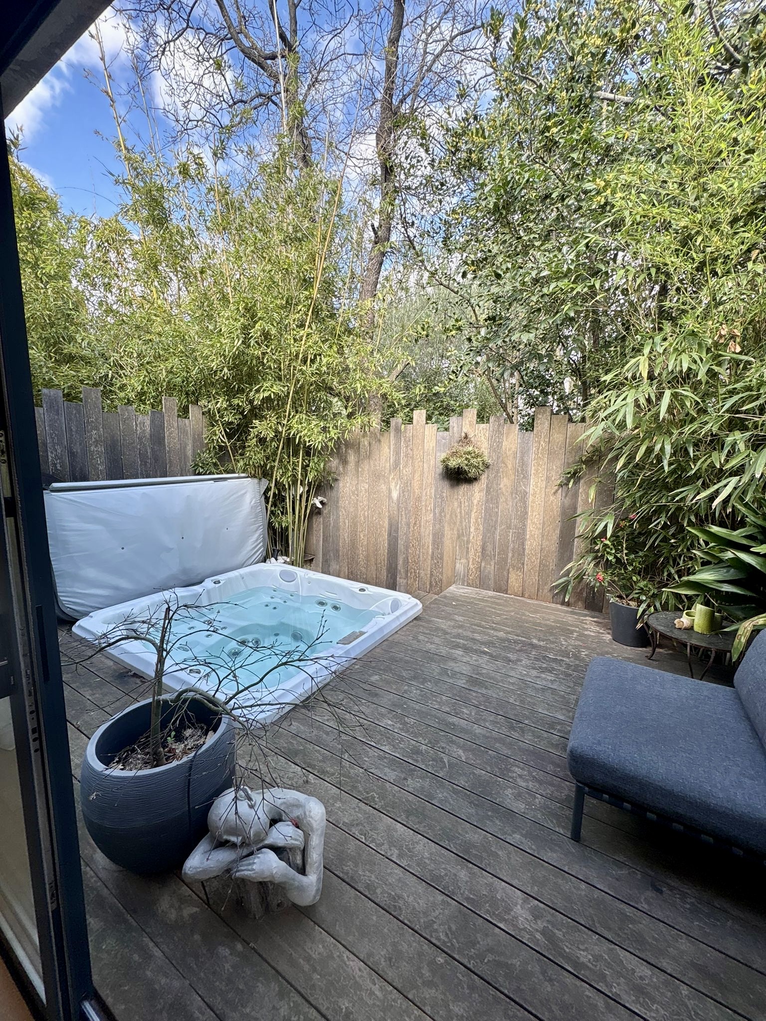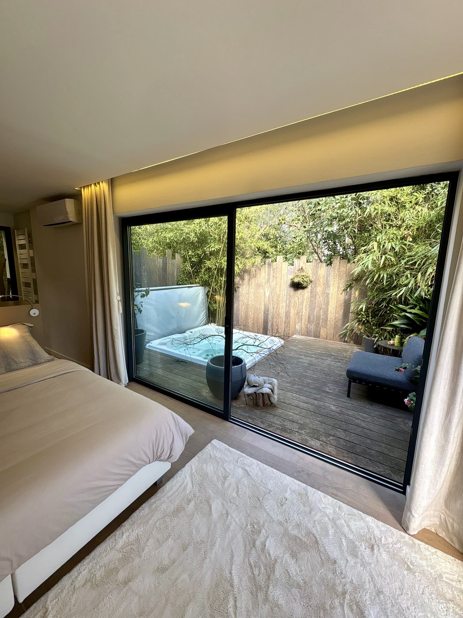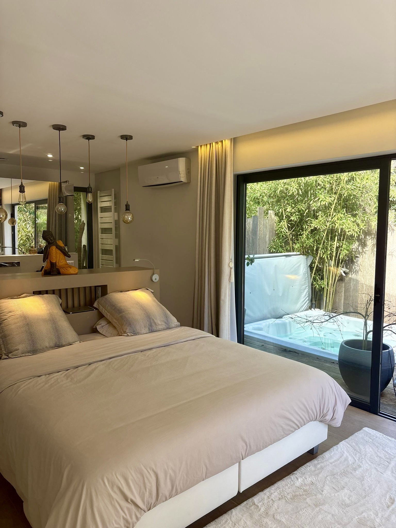 À l’extérieur, laissez-vous séduire par une somptueuse piscine lagon bordée de terrasses ensoleillées, tandis que le jacuzzi invite à la détente absolue. Un sauna privé complète cet espace bien-être pour une expérience digne d’un hôtel de luxe, au cœur d’un environnement calme et naturel.
